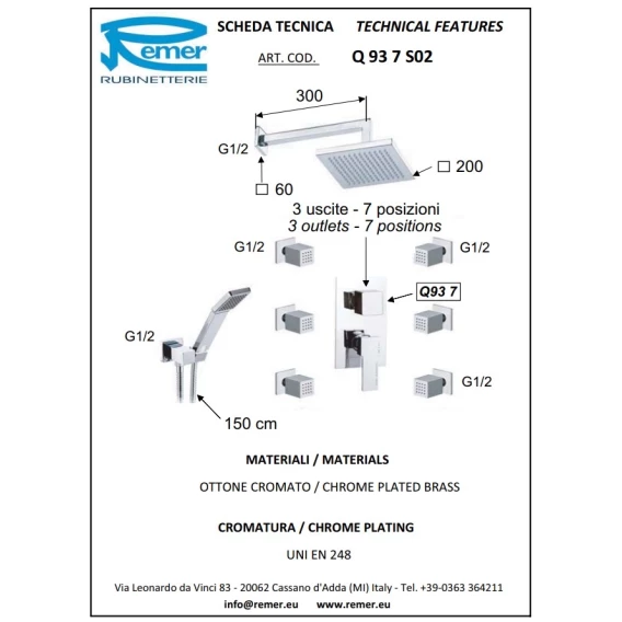 Душевой комплект 200 мм Remer Qubika Q937S02