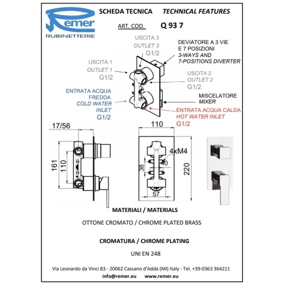 Душевой комплект 200 мм Remer Qubika Q937S03