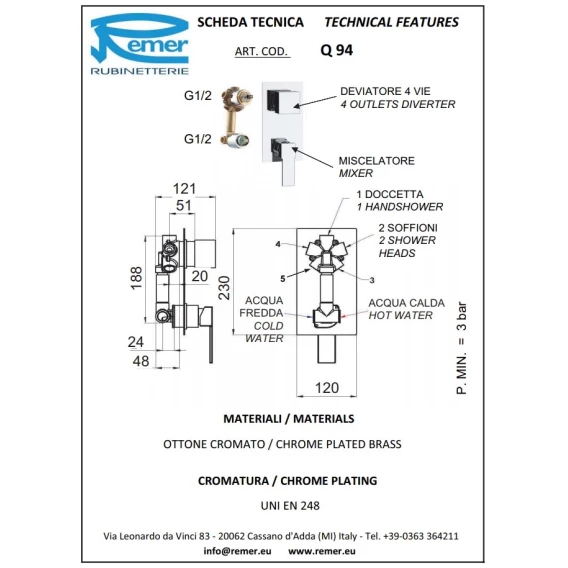 Смеситель для биде без донного клапана Remer Qubika Q21