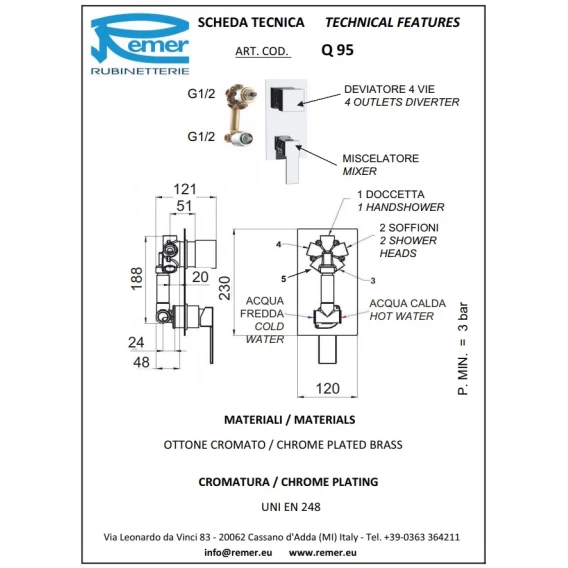 Смеситель для душа Remer Qubika Q39