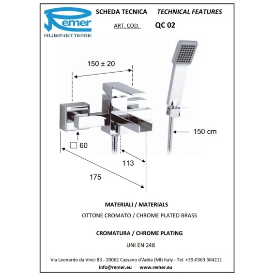 Смеситель для раковины с донным клапаном Remer Qubika Cascata QC10