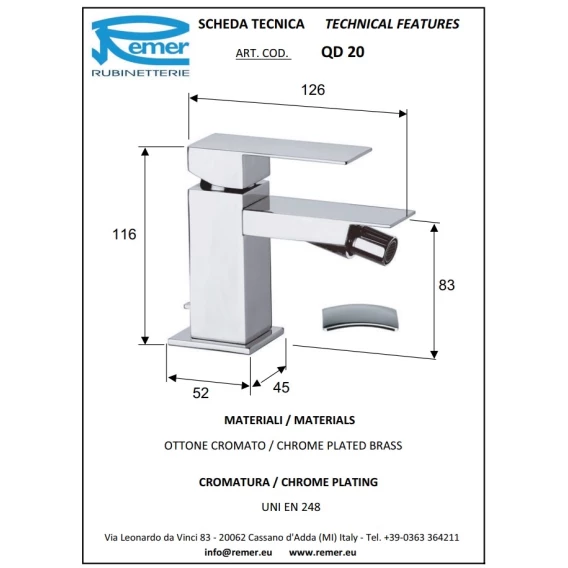 Смеситель для биде с донным клапаном Remer Q-Design QD20