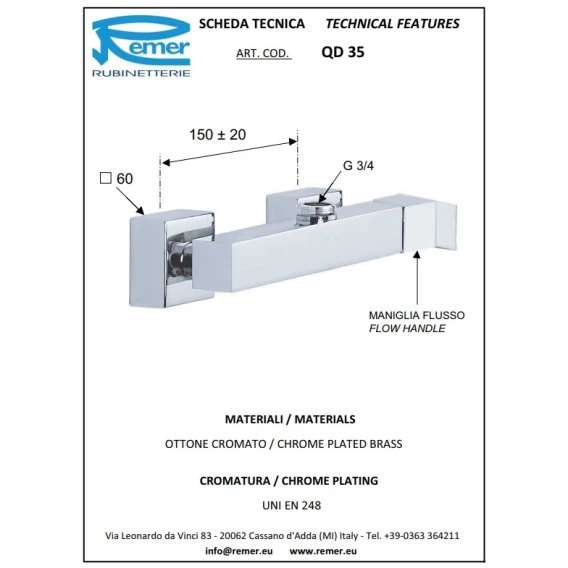 Смеситель для биде с донным клапаном Remer Q-Design QD20
