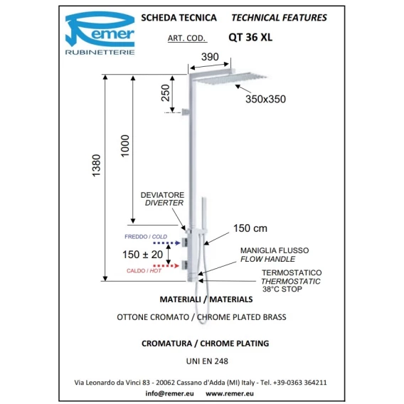 Душевая система 350 мм Remer Qubika QT36XL