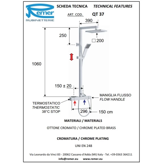 Металлическая розетка, Эксцентрики, Душевой шланг, Душевая лейка, Держатель для душевой лейки, Верхний душ, Кронштейн, Штанга душевая, Термостат
