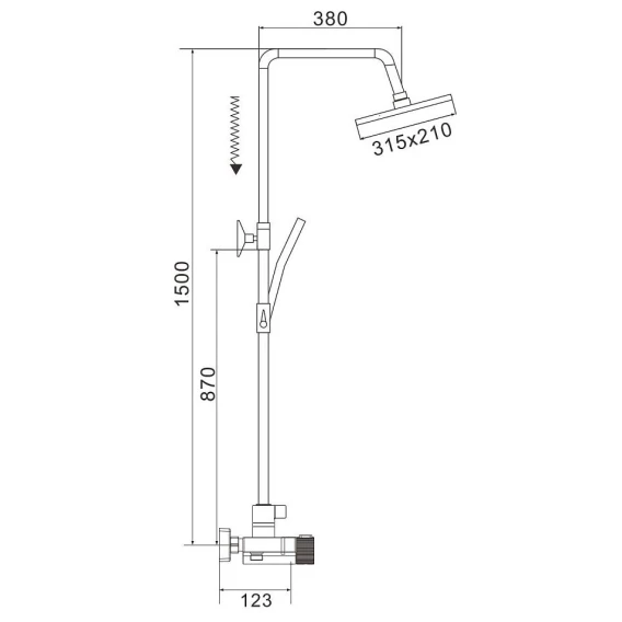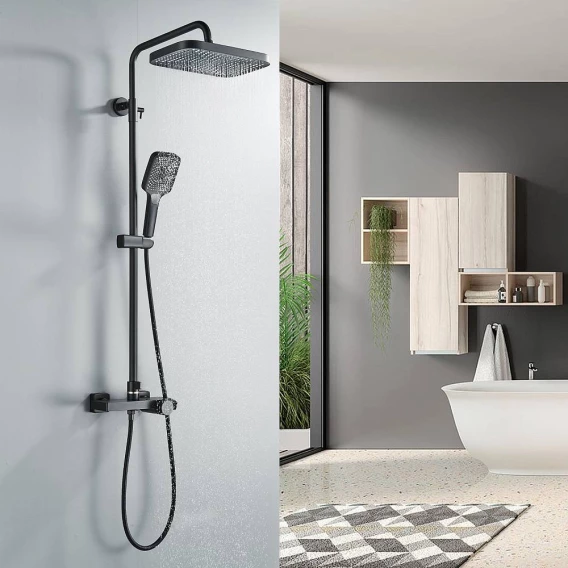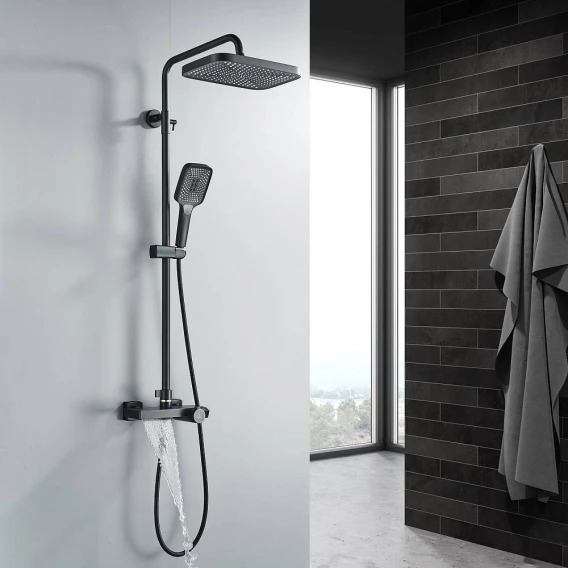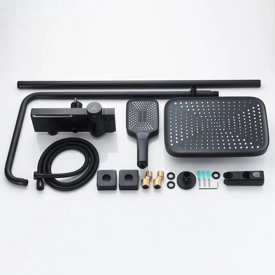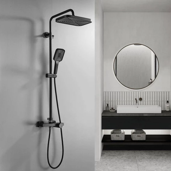 Душевая система Rose R1896H-6 315x210 мм, с термостатом, черный матовый