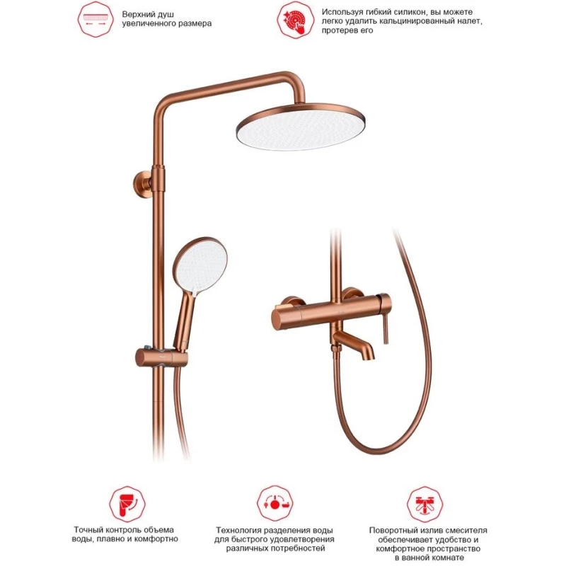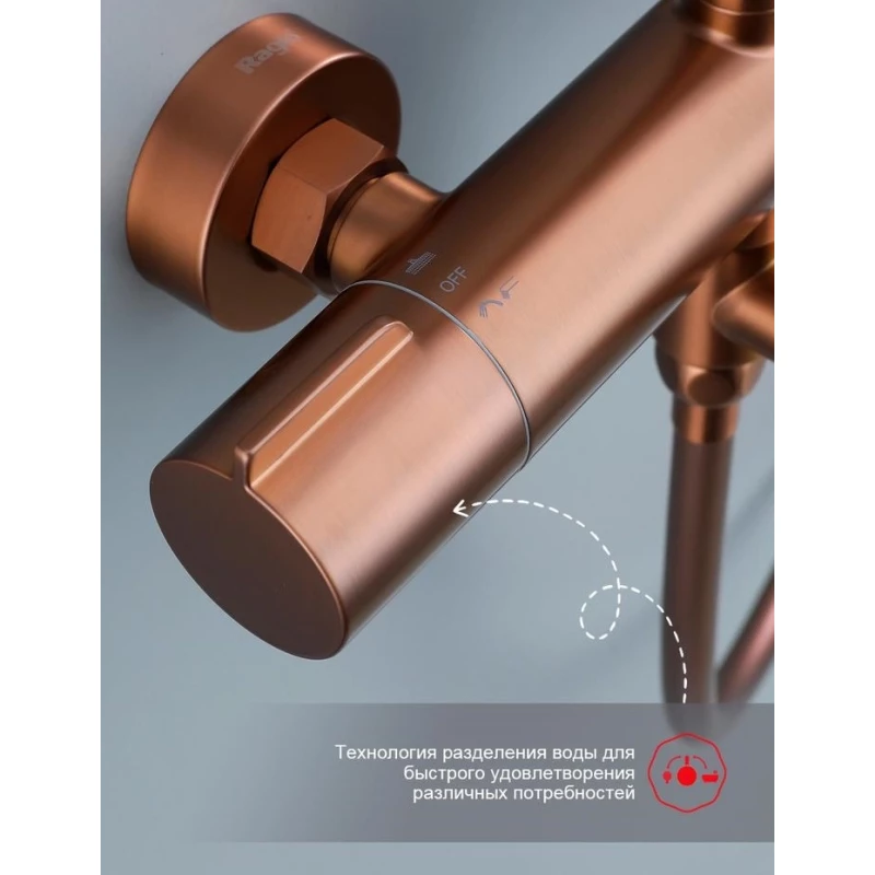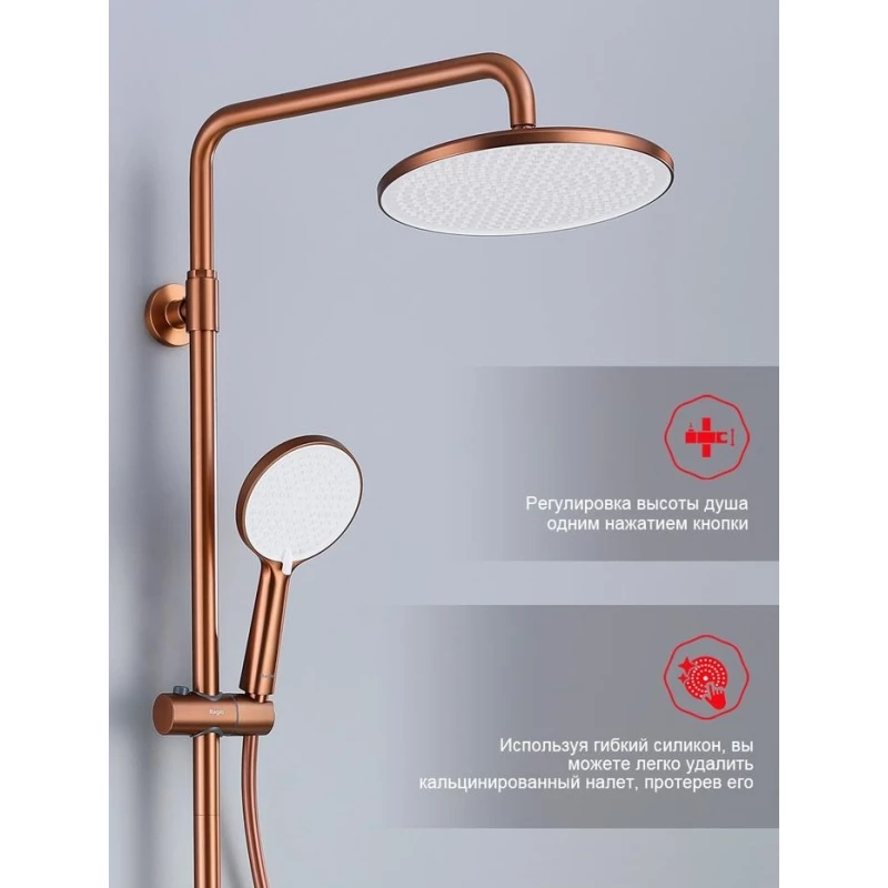 Душевая система Raglo R20.24.33 250 мм, со смесителем, медь матовая