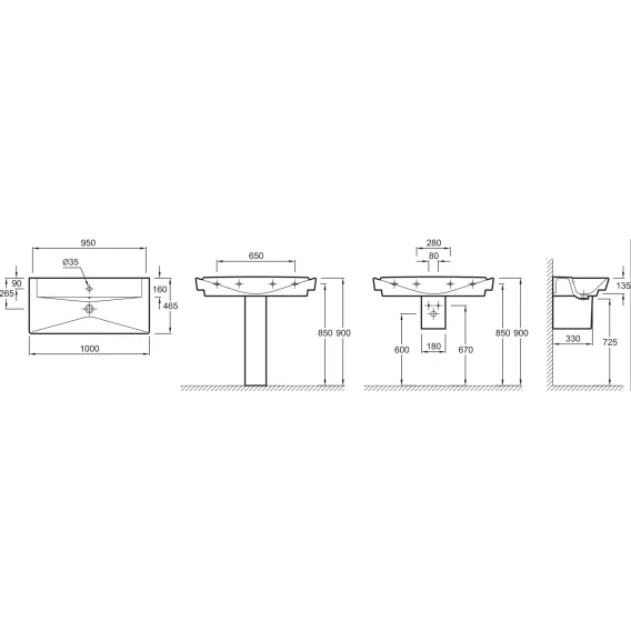 Подвесная, С пьедесталом, С полупьедесталом, Накладная