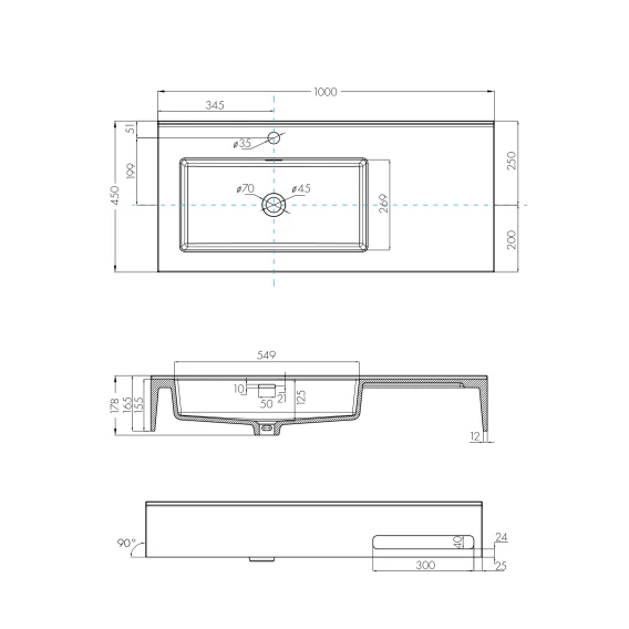 Раковина 100x45 см Акватон Квадро Про 1A733331QA01L