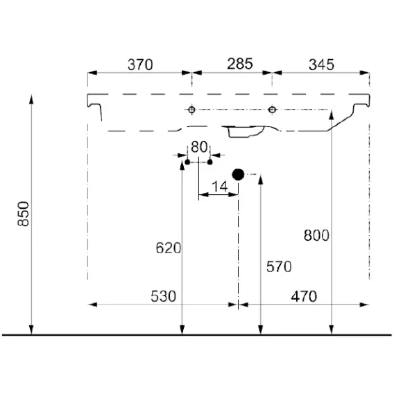 Намеченных отверстий для смесителя