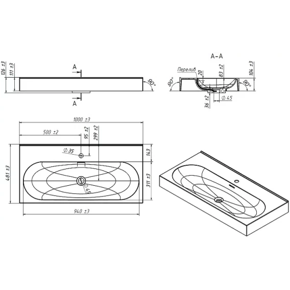 Раковина 100x48,1 см Belux Стокгольм 4810924275752