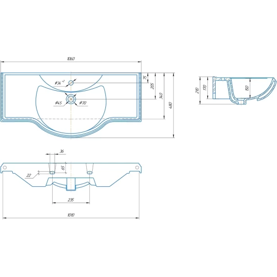 Раковина 106x48 см Belux Классик 4640021060926