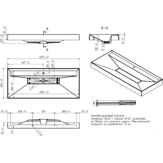 Раковина 120,1x50,3 см Belux Триумф 4810924261663