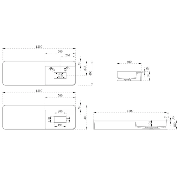 Раковина 120x40 см Abber Stein AS2627-1.2