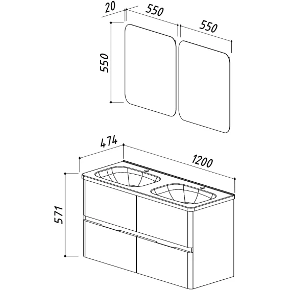 Раковина 120x47,4 см Belux Терра Лайт 4810924260871