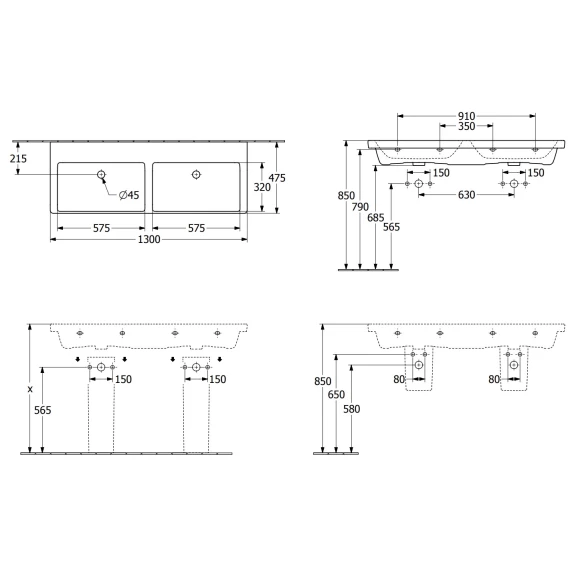 Раковина 130x47,5 см Villeroy & Boch Subway 3.0 4A71D301