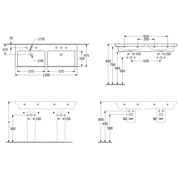 Раковина 130x47,5 см Villeroy & Boch Subway 3.0 4A71D501