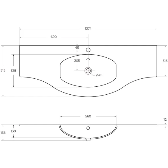 Раковина 137,4x51,5 см Cezares Vague 50155