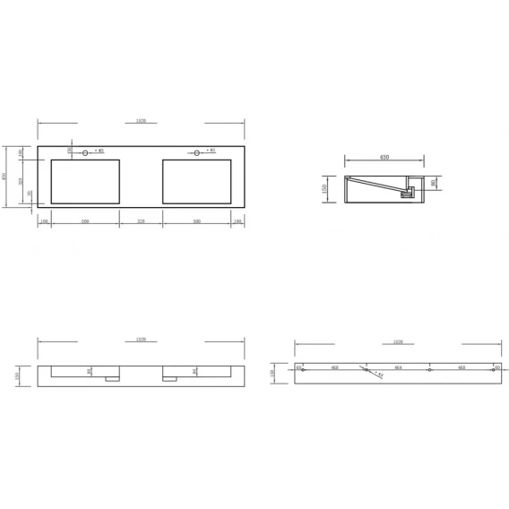 Раковина 152x45 см Abber Stein AS2643-1.5
