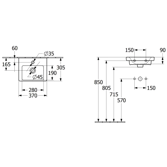 Раковина 37x30,5 см Villeroy & Boch Subway 3.0 43703701