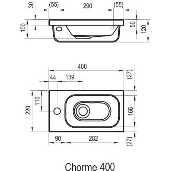 Раковина 40x22 см Ravak Chrome 400 R XJGP1100000