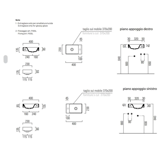 Раковина 40x23 см GSI Nubes 9636011
