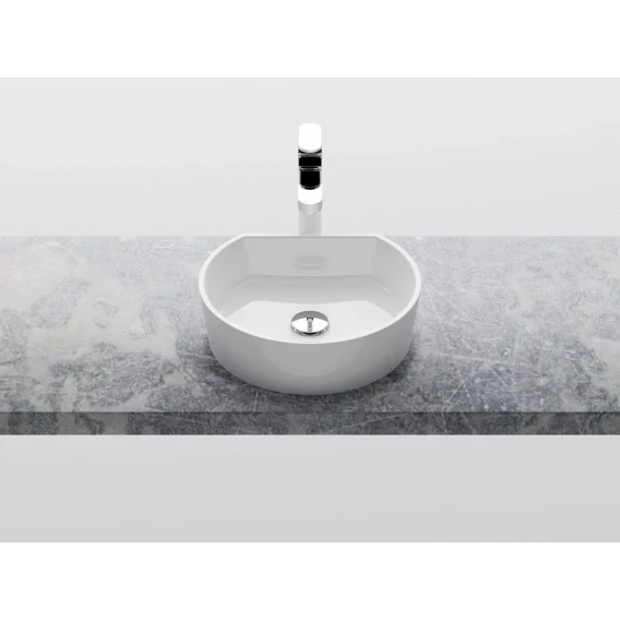Авторский умывальник изготовленный из литого мрамора, дизайн которого основан на элементарной геометрической форме круга. Идеально сбалансирует в ванной комнате элементы прямоугольной формы, такие как плитка душевого уголка или мебель. Подходит для установки на столешницу.
