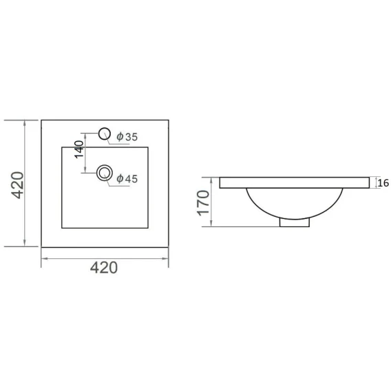Раковина 42x42 см Orange B03-410W