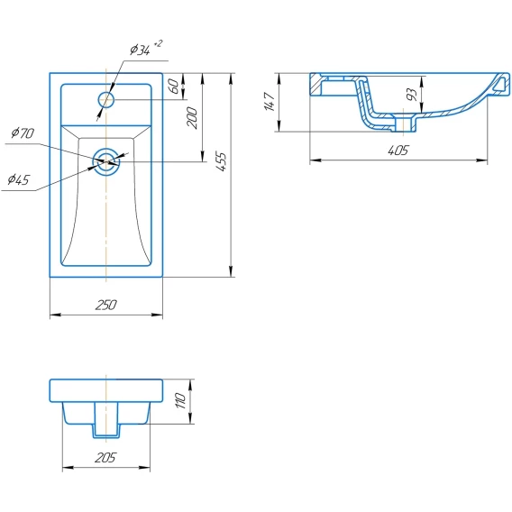 Глубина 25 см