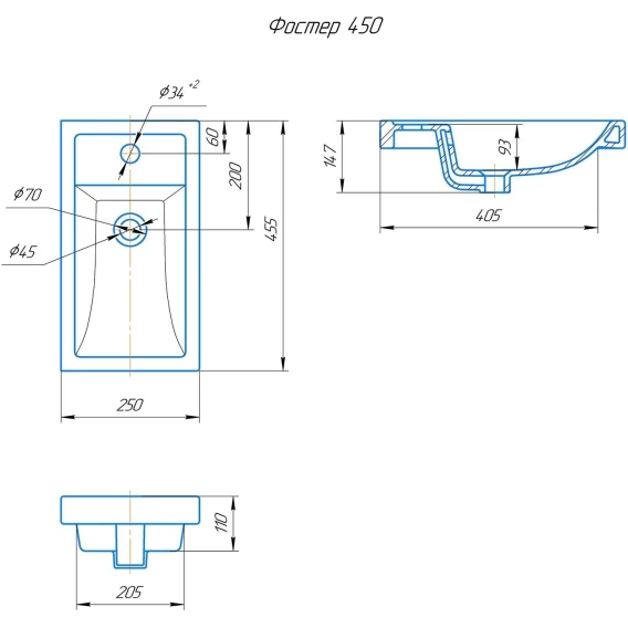 Раковина 45,5x25 см Onika Фостер 4640021065907