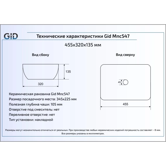 Раковина 45,5x32,5 см GID Stone Edition Mnc547