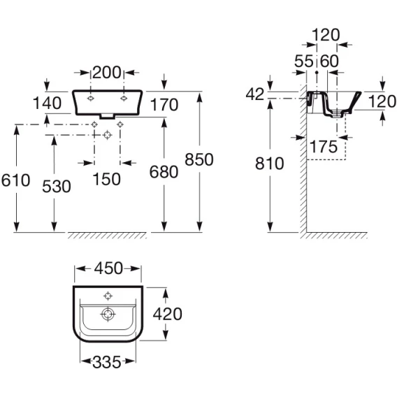 Тумба с раковиной белый матовый 45 см Roca The Gap ZRU9302735 + 327477000