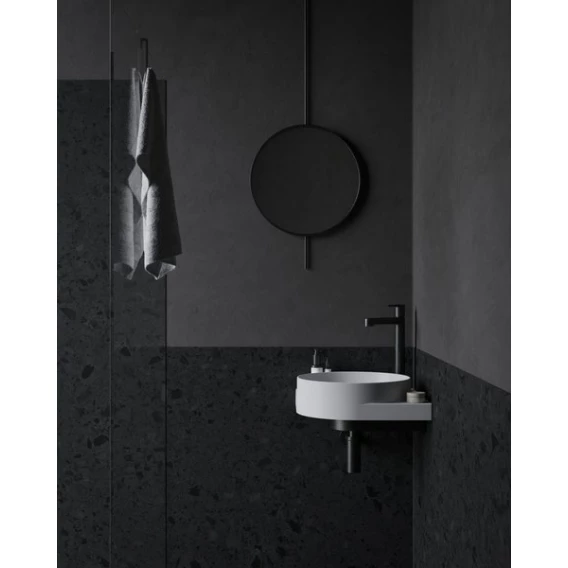 Умывальник Yard 450 C изготовлен из высококачественной керамики и предназначен для установки на консоль Yard 450 C, умывальник нельзя повесить на стену отдельно. Умывальник должен сочетаться со стационарным переливом, предотвращающим перетекание воды.