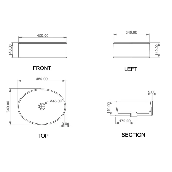 Раковина 45x34 см GSG Like LKLAVFSBF45016