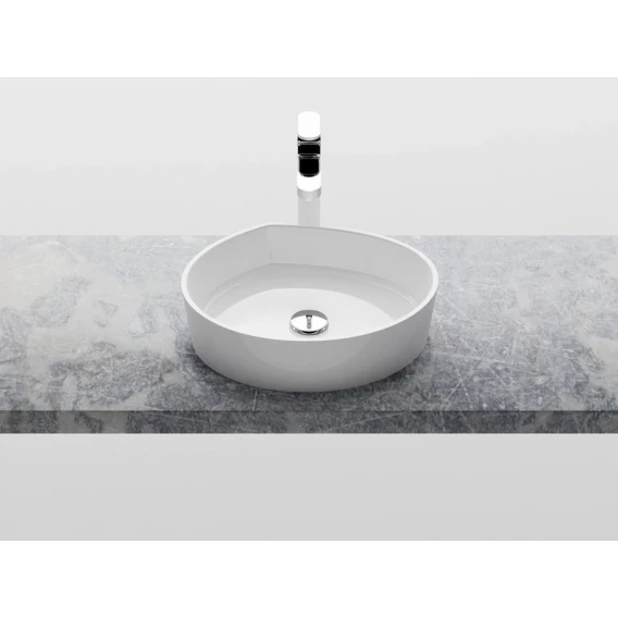 Авторский умывальник изготовленный из литого мрамора, дизайн которого основан на элементарной геометрической форме круга. Неправильная форма умывальника придает ванной комнате оригинальности. Округлые линии умывальника Moon идеально сбалансируют в ванной комнате элементы прямоугольной формы, такие как плитка душевого уголка или мебель. Подходит для установки на столешницу.