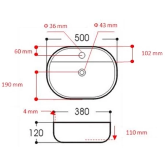 Раковина-чаша Gural Vit Top TP20MUL00 61x41 см, накладная, белый