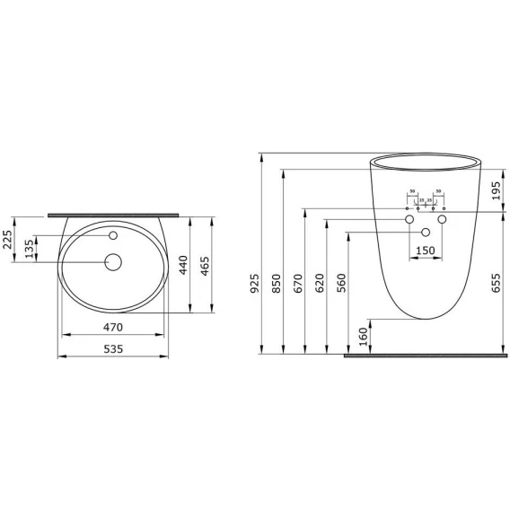 Раковина 53,5x46,5 см Ambassador Queen 116T20002