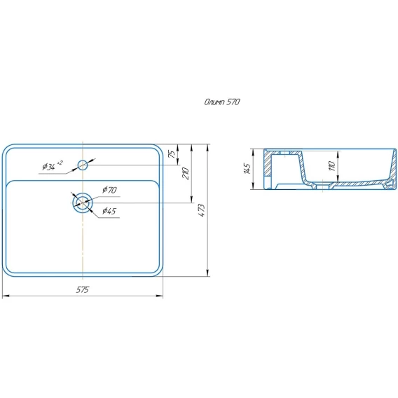 Раковина 57,5x47,3 см Onika Олимп 4630055550401