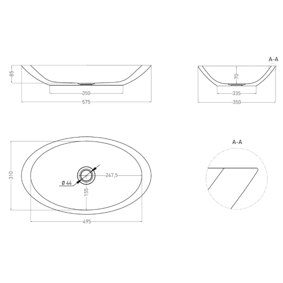 Раковина 57,5x35 см Salini S-Sense Callista 02 1101102G