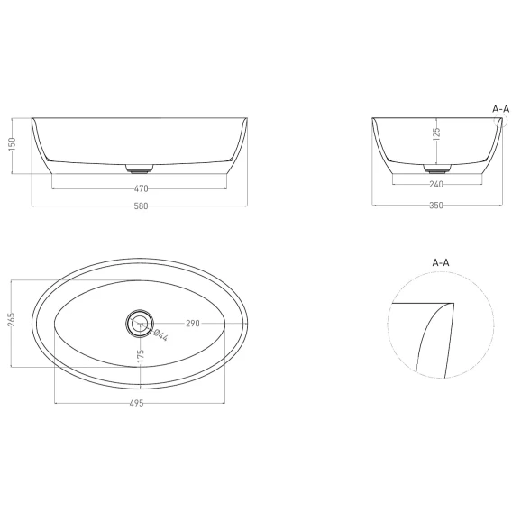 Раковина 58x35 см Salini S-Sense Alda 01 110611G
