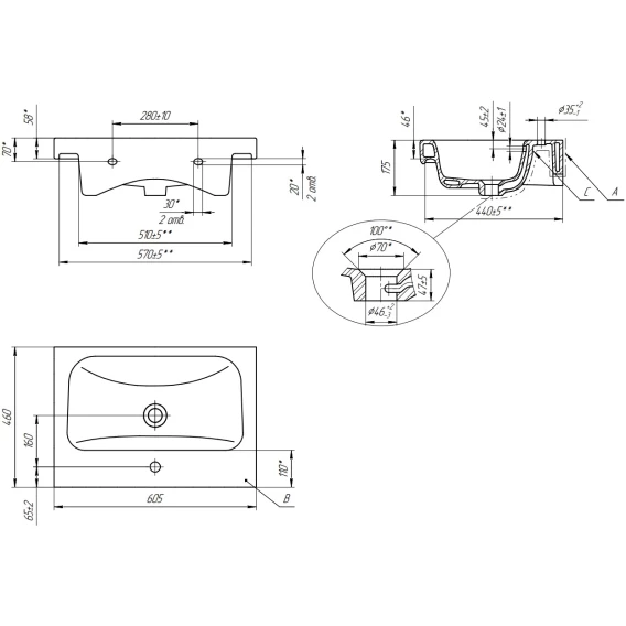 Намеченных отверстий для смесителя