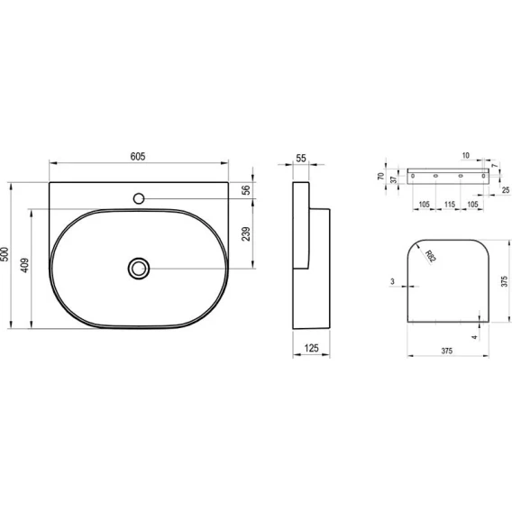 Раковина 60,5x50 см Ravak Yard 600 XJX0D260002