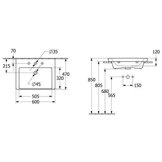 Раковина 60x47 см Villeroy & Boch Subway 3.0 4A706F01