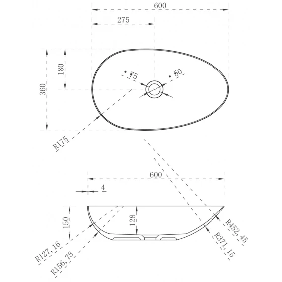 Раковина 60x36 см Abber Stein AS2615