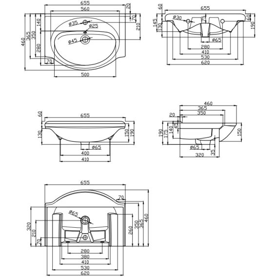 Раковина 65,5x46 см Bellezza Mia 4607104872197