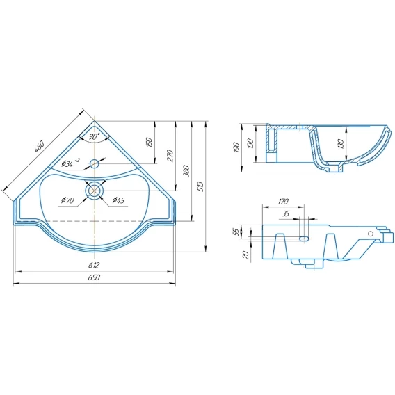 Раковина 65x51,3 см Runo Классик УТ000003756