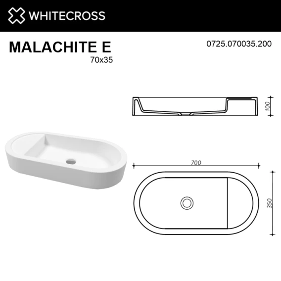 Раковина 70x35 см Whitecross Malachite E 0725.070035.200
