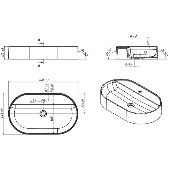 Ширина 74 см