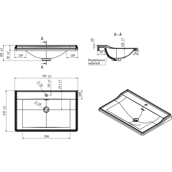 Раковина 112x57,5 см Belux Анжело 4810924265371