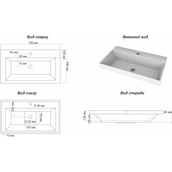 Раковина 79,5x44,6 см Corozo Слим 5020800